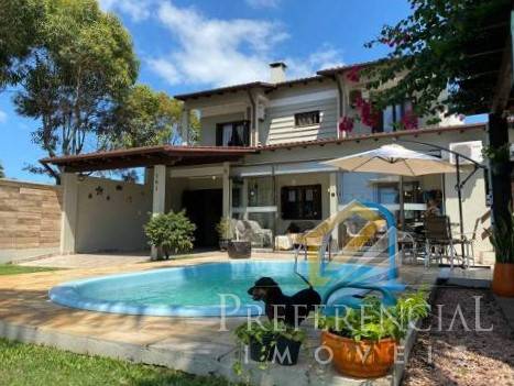 Sobrado localizado na praia de Remanso, melhor orientação solar, amplo pátio com piscina, cercado e murado, composto de: 02 dormitórios (sendo 02 suÃtes), banheiro social, living em 02 ambientes com lareira, terraço, varanda fechada em vidro, área de lazer com pergolado e linda piscina, belÃssimo jardim, churrasqueira, vaga de garagem para 04 carros, semi-mobiliado. Contate-nos!!!