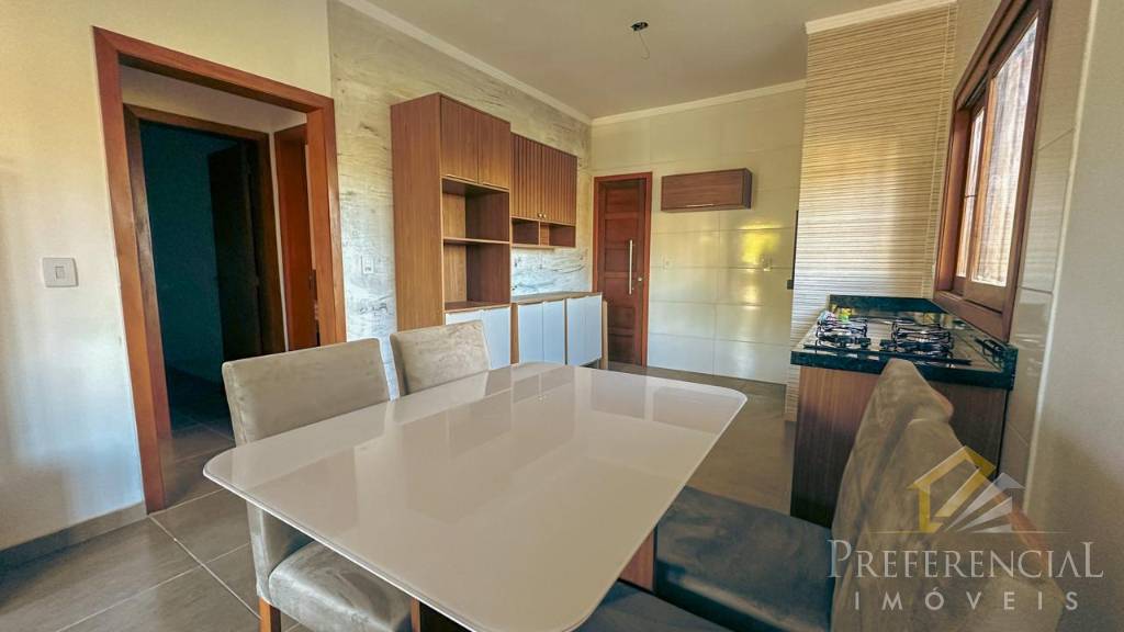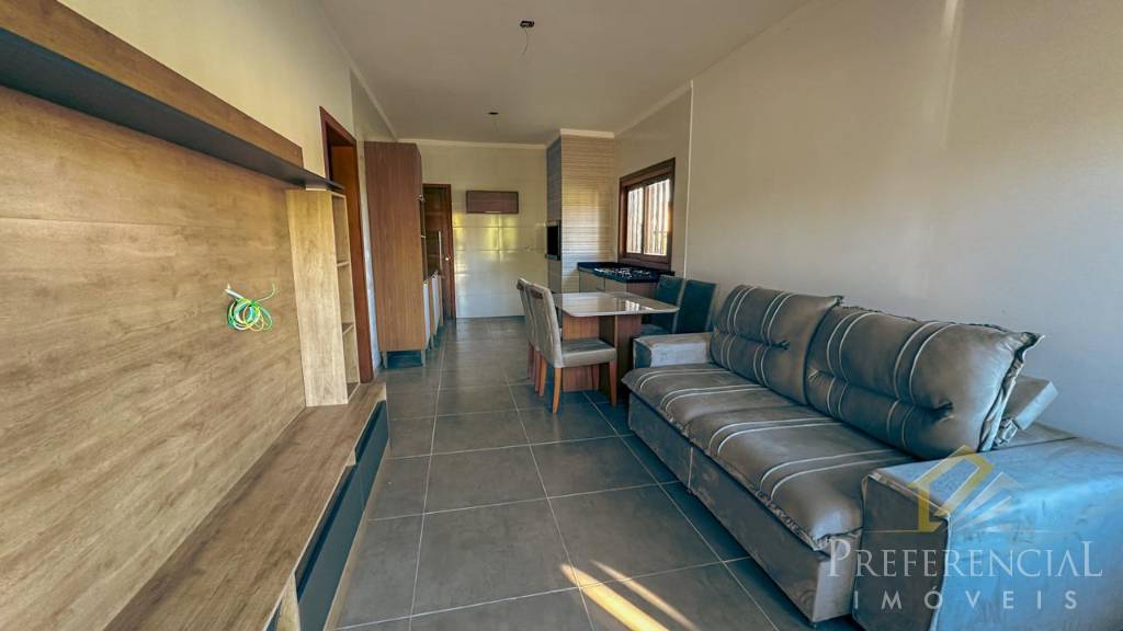 Apresentamos uma casa nova de esquina em ótima localização! Próxima a mercado e praça, a residência conta com pátio cercado e é composta por 2 dormitórios, banheiro social, sala de estar e jantar com cozinha integrada, além de garagem para carro e mobiliada. Entre em contato e descubra mais!