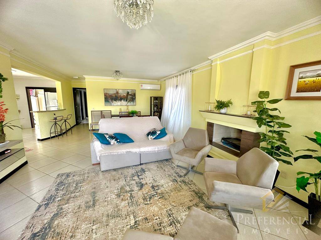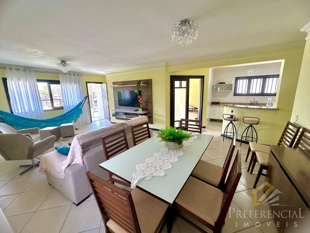 Casa térrea composta por 03 dormitórios sendo 01 suíte, mobiliado, banho social, living 02 ambientes com lareira, cozinha americana, garagem fechada para 02 carros, alarme monitorado, ventilador de teto, quiosque com espaço gourmet, deck com piscina