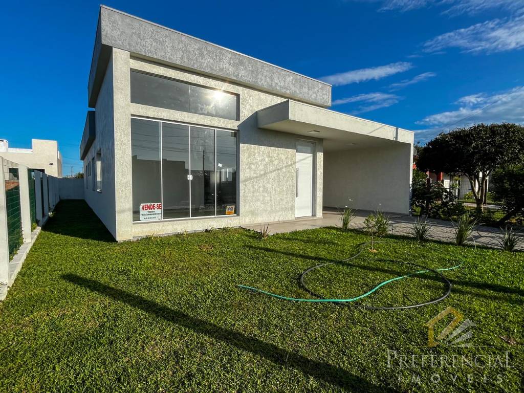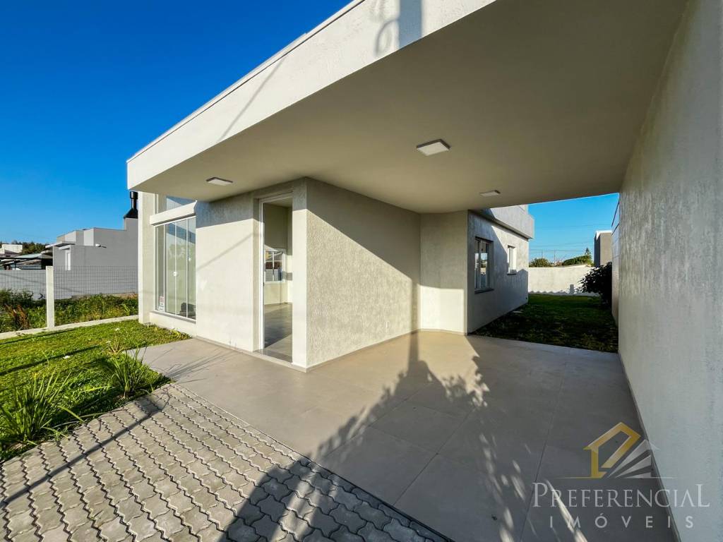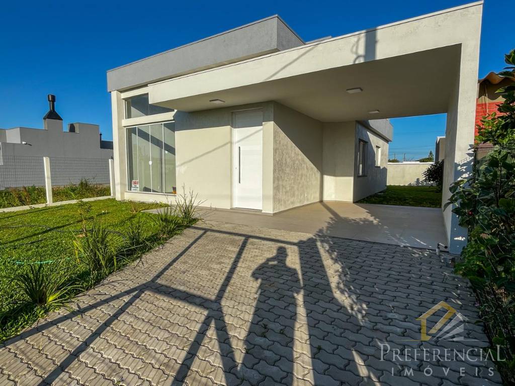 Casa nova, excelente padrão construtivo, composta por 03 dormitórios, sendo 01 suíte, living integrado, cozinha americana, banheiro social, pátio na frente e nos fundos possibilitando colocar piscina, abrigo para carro.