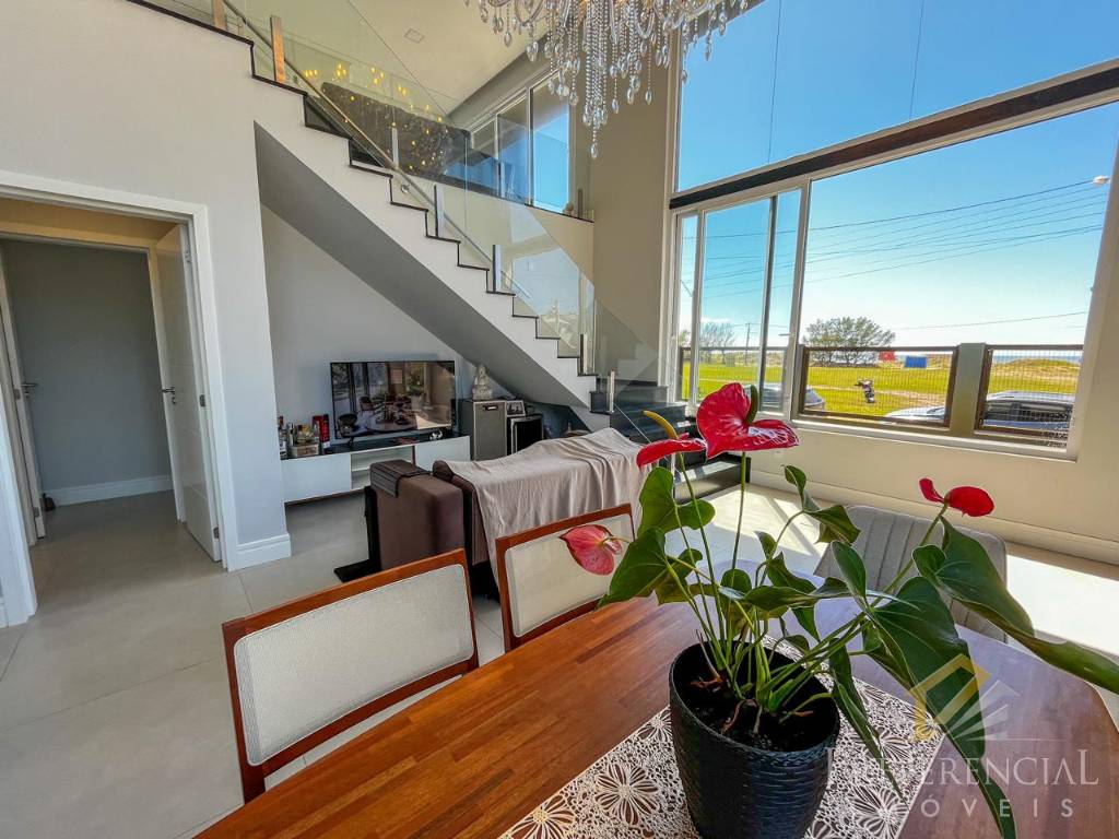 Excelente Imóvel de esquina, frente leste/sul, localização privilegiada com vista panorâmica para o mar, alto padrão construtivo, aberturas em PVC, pé direito duplo, espera para água quente, jardim de inverno, cortinas automatizadas, composto por 03 suítes, sendo 02 americanas, lavabo, espaço intimo com lareira e sacada, cozinha com churrasqueira integrada com sala, garagem fechada para 01 carro, vaga sem cobertura para 02 carros, lavanderia, depósito, amplo pátio. Contate-nos e solicite maiores informações!