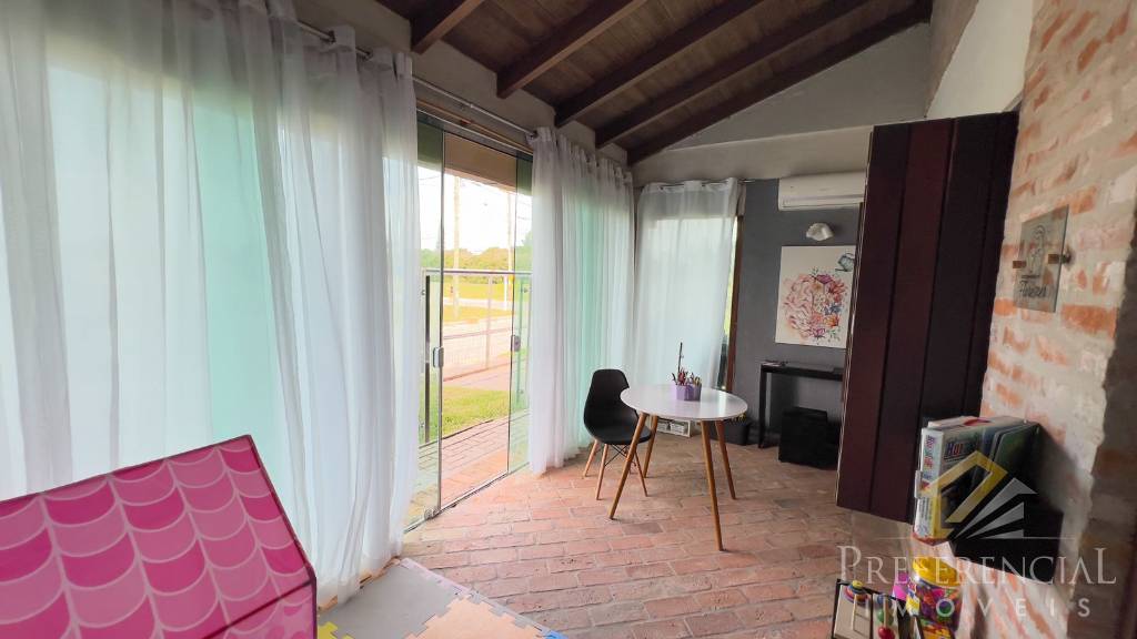 3 dormitórios, sendo 1 suíte com closet; Banheiro social; Living integrado; Cozinha americana; Mobiliada; Amplo Pátio; Piscina; Fogo de chão; Churrasqueira; Garagem fechada para 2 carros; Lavanderia; Ótima localização; Frente leste