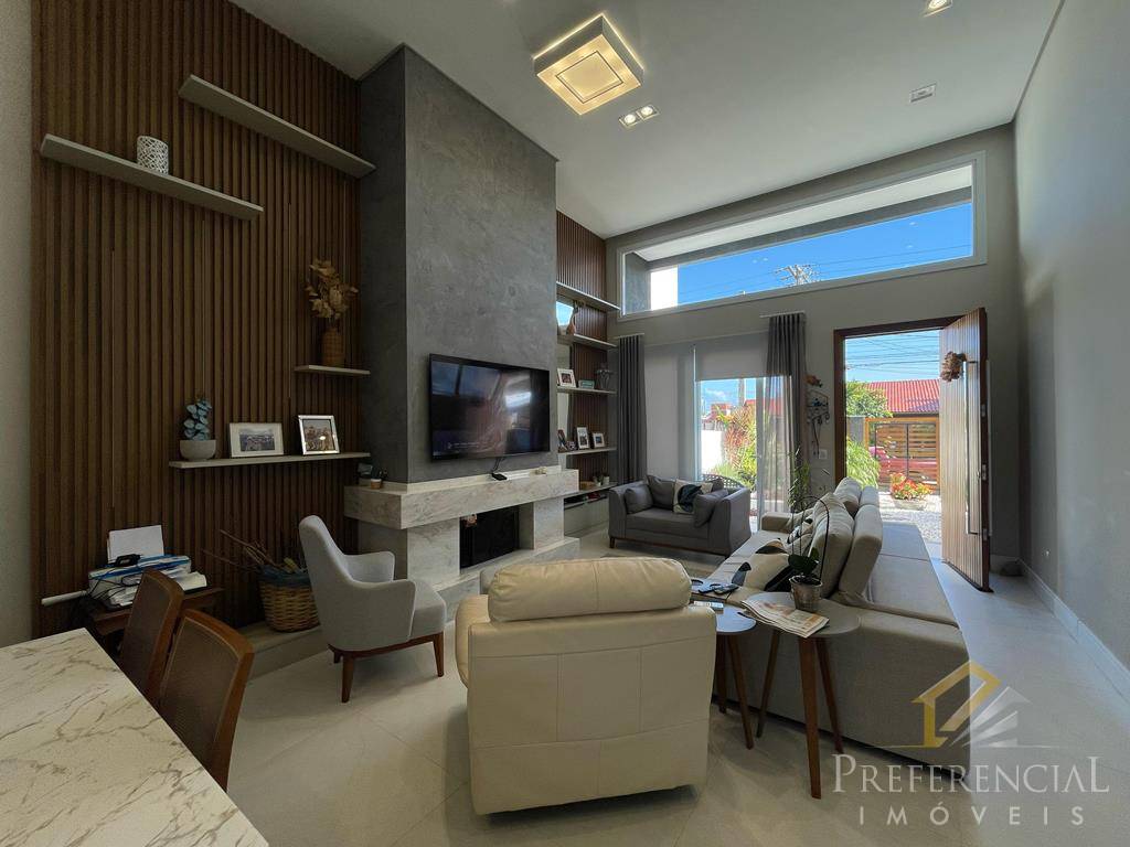 Excelente casa na praia de Xangri-lá, 04 suítes, Lavabo, Estar com lareira, Sala de jantar, Copa cozinha tipo ilha, Churrasqueira, Varanda, Piscina, Espera p/ aquecimento, Estacionamento coberto para 02 carros, Construção estilo contemporânea, Mobiliada e