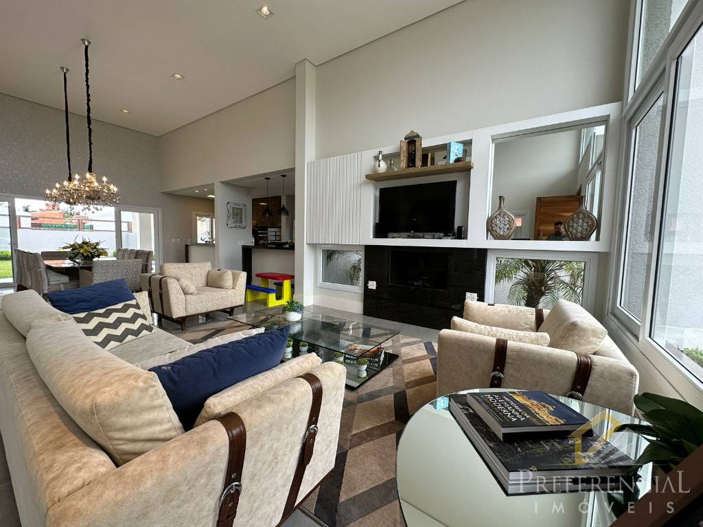 Excelente casa em alto padrão construtivo, composta por: 04 suítes, sala estar/ jantar, cozinha, lareira, lavabo, churrasqueira, área de serviço, piscina de concreto, varanda, abrigo p/ carro, mobiliada e decorada. Contate-nos!!!