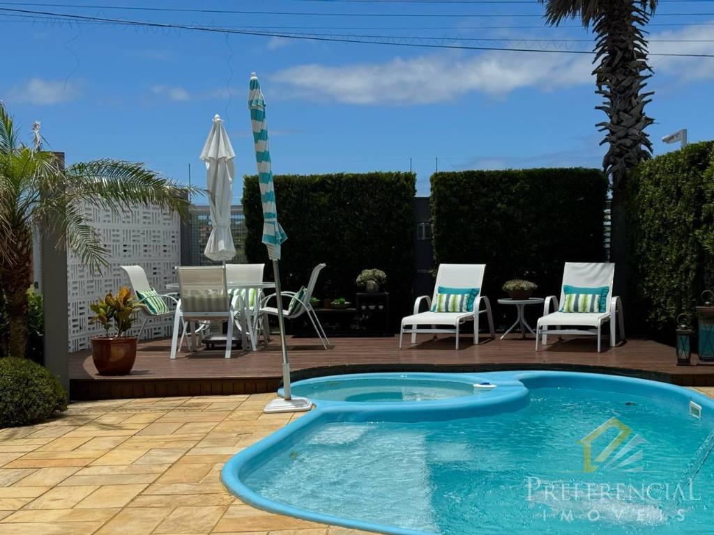 Composto de 04 dormitórios, sendo 01 suíte com sacada, 04 banheiros, Garagem, Churrasqueira rotativa, Sistema de som ambiente, Pátio cercado, com deck, piscina, paisagismo e iluminação, Aquecimento solar para água da piscina, Totalmente mobiliado e decorado, Obras de arte com certificação, Portão eletrônico, Câmeras e alarmes de monitoramento, Cerca elétrica, Depósito, Varanda com toldos, Central de gás, Água quente, Ar condicionado em todos dormitórios, sala e área da churrasqueira, Ótima localização e posição solar.