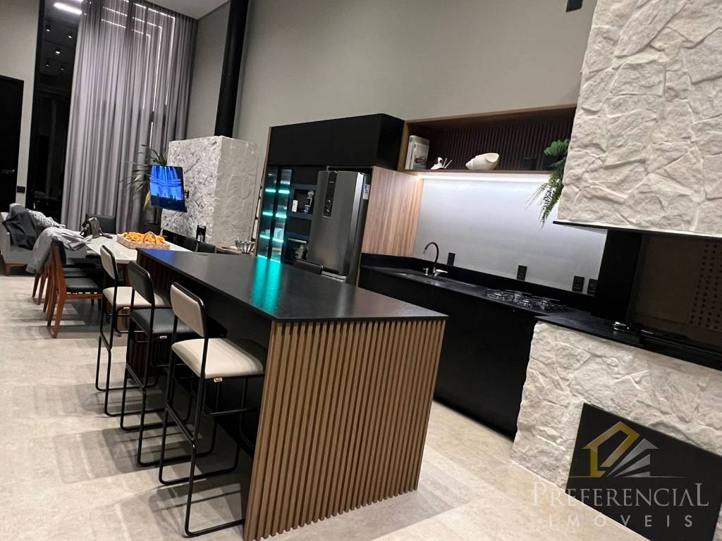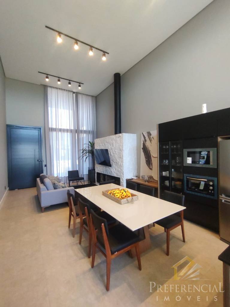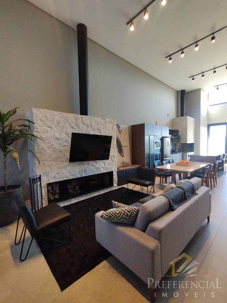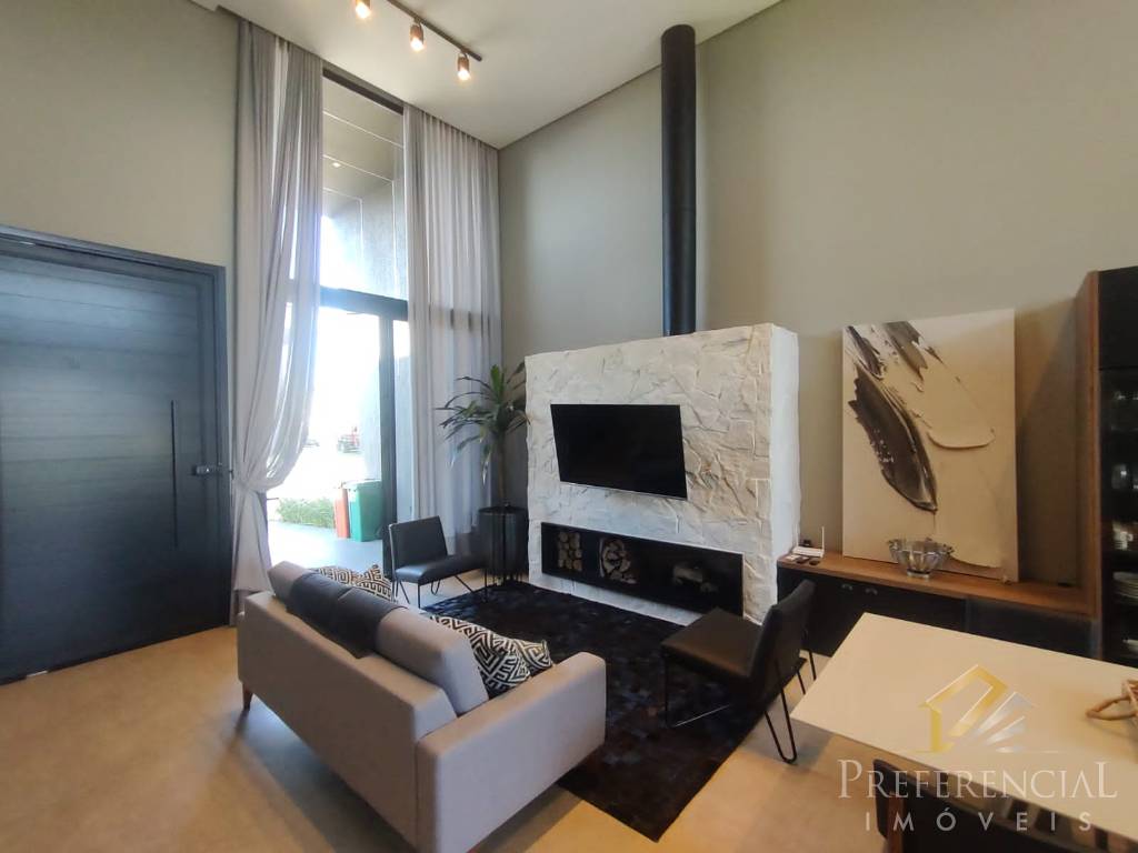 Casa térrea no Condomínio Blue, frente norte, com 4 suítes, living em 2 ambientes, lareira, cozinha americana, churrasqueira, lavabo, área de serviço, varanda, pátio privativo, abrigo para carros! Contate-nos e solicite mais informações!
