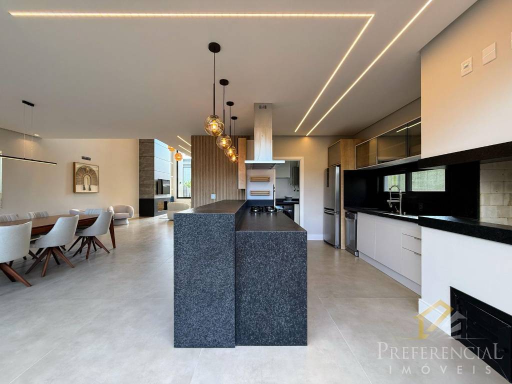 Casa em condomínio fechado com 04 suítes, mobiliada e decorada, ?piscina, living 3 amplos, ambientes com lareira, cozinha americana com churrasqueira, ?área de serviço, garagem para 4 carros, vista lago, próximo ao clube.