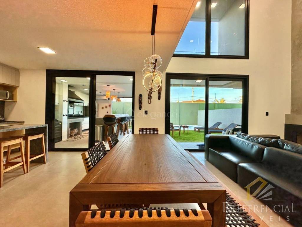 Sobrado mobiliado e decorado, Próximo ao clube e infraestrutura, 04 suítes individuais sendo 01 térrea, Terraço em uma das suítes, Banheiro social, living em 03 ambientes com lareira e pé direito duplo com ótima iluminação, Cozinha americana, Amplo espaço gourmet com churrasqueira e Parrila Uruguaia completa, Piscina, Vaga de garagem para 02 carros, Lavanderia.