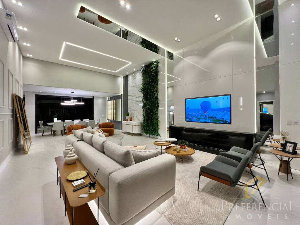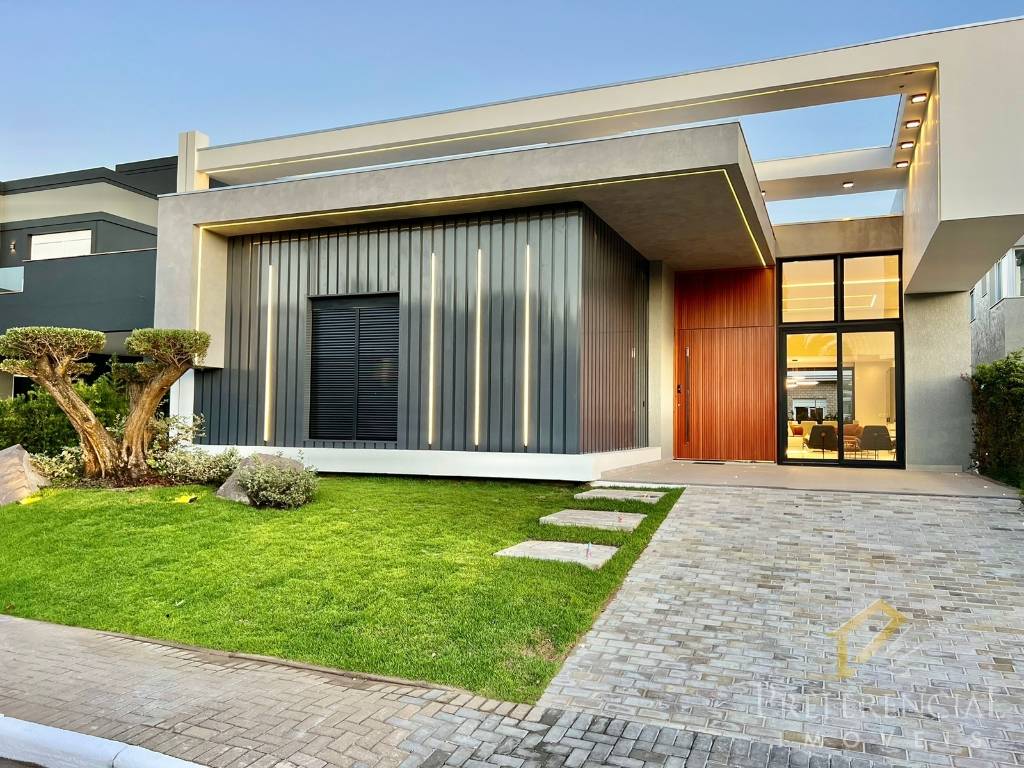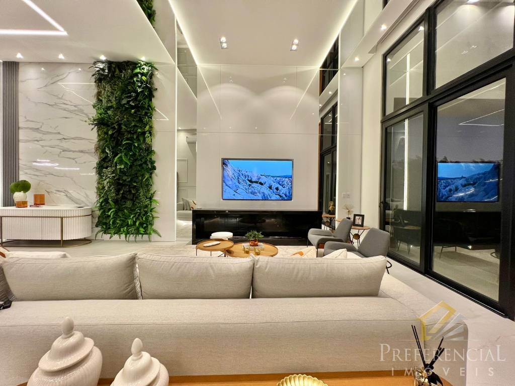 Linda casa térrea com Fachada moderna e imponente, composta por 04 suítes, Amplo living, Pé direito duplo, Mobiliada e decorada, Lareira revestida c/ granito nero bianco, Espaço gourmet c/ churrasqueira rotativa com sensor de temperatura e bifeteira, Cozinha separada, Aberturas em PVC preta, com persianas motorizadas, Cortinas e persianas automatizadas, Piscina de concreto, Lavabo, Split em todas as peças, Jardim com irrigação, iluminação e Oliveira, Lavanderia, Internet. Contate-nos e solicite maiores informações!