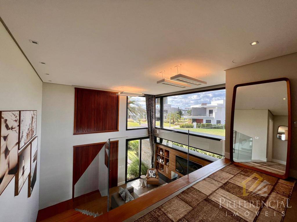 LUXUOSO SOBRADO EM LOCALIZAÇÃO PRIVILEGIADA, COMPOSTO POR 04 AMPLAS SUITES, SENDO 03 COM VISTA PARA O LAGO, AMPLO LIVING COM LAREIRA E PÉ DIREITO DUPLO, SALA DE ESTAR, SALA DE JANTAR COM MAGNÍFICA VISTA PARA O LAGO, ESPAÇO GOURMET COM CHOPEIRA, LAVABO TODO TRABALHADO EM MADEIRA NOBRE, PISCINA EM CONCRETO COM BORDA INFINITA, JARDIM COM EXUBERANTE PAISAGISMO, ILUMINAÇÃO TODA EM LED E LINDA FACHADA EM CONCRETO APARENTE.