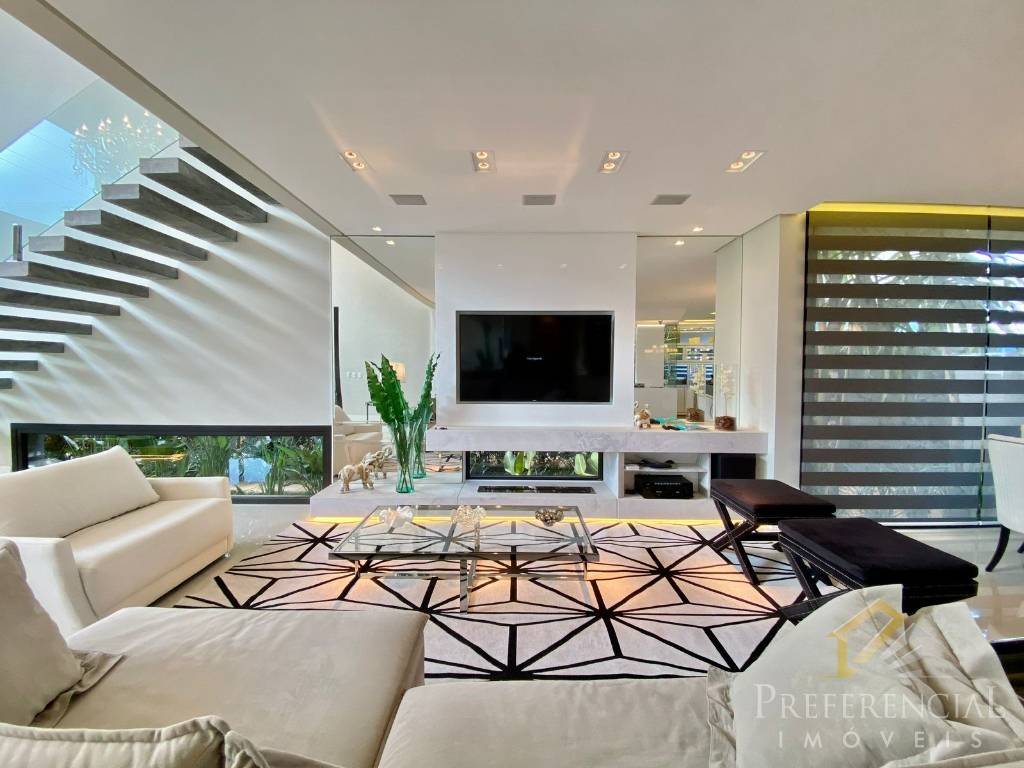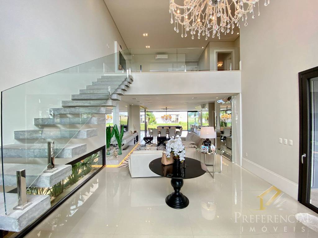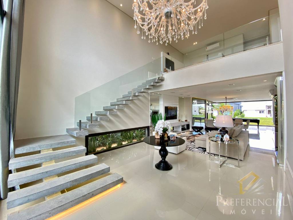 Belo imóvel em condomínio fechado! Composto por 04 suítes, sendo 01 suíte master com 90m², 2 closets, Banheira hidromassagem, sacada com extensão na parte do fundos de toda a casa, vista lago (por do sol fantástico), Suíte térrea, Lavabo, Finamente mobiliada e decorada, Sofá elétrico, Móveis em laca, Escada em concreto aparente, lustre, Pé direto duplo, Cozinha com bancada americana, Churrasqueira automatizada, Área de serviço, Dispensa, Automação, Sistema de som em toda área social (inclusive na piscina), Piscina de concreto e borda infinita, Móveis Bittencourt, Jardim com irrigação. Contate-nos e solicite maiores informações!