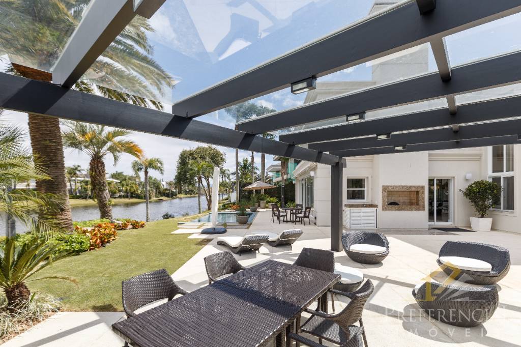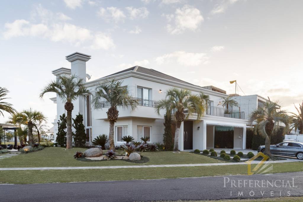 Casa de alto padrão em condomínio de luxo. São 6 amplas suítes ( possibilidade de 7 suítes e/ou elevador) com dependência completa + garagem fechada para 3 carros. Localização privilegiada na beira do lago e área verde junto à região mais desejada e valorizada da praia de Atlântida, próximo à avenida central, restaurantes e lazer. São 503 m2 projetados cuidadosamente, que harmonizam alta qualidade com muito conforto, espaço e elegância para superar as expectativas suas e da família. Possui completa área de lazer com churrasqueiras interna e externa, som ambiente, pergolado junto à piscina aquecida de borda infinita integrada à um lindo paisagismo e projeto luminotécnico na frente de uma vista fantástica do lago. Contate-nos e solicite maiores informações!
